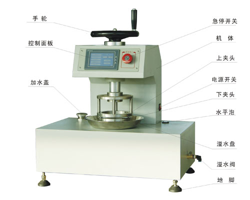 耐靜(jìng)水壓測試儀用(yòng)於測定經過防水處理的各(gè)種織物的抗滲水(shuǐ)性,如(rú)帆布、油布、帳篷(péng)布、苫布、防雨服裝布及土工布材料等。耐靜水壓測...